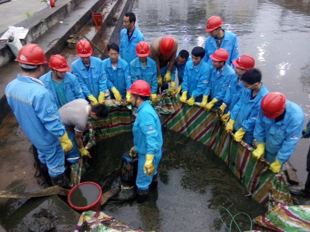 11日凌晨3點,七輛大巴到達銅礦,三百多名員工立即按照分工分赴各自崗位投入戰斗:電鋅二車間、氧化鋅車間、綜合回收車間等單位135名員工負責尾礦庫含鉈淤渣淤泥清理及安全轉運、入庫封存工作;電鋅一車間109名員工在轉運沿途一溜排開,負責道路清掃及灑落渣泥回收;電鋅四車間24名員工負責電鋅車間物料封存、外排口封堵等工作;電鋅三車間28名員工負責選廠碎礦車間清理工作;硫酸車間、硫酸鋅車間31名員工負責選廠脫水車間含鉈廢水整治工作;維修車間17名員工負責機電設備、管道的安裝維修工作……