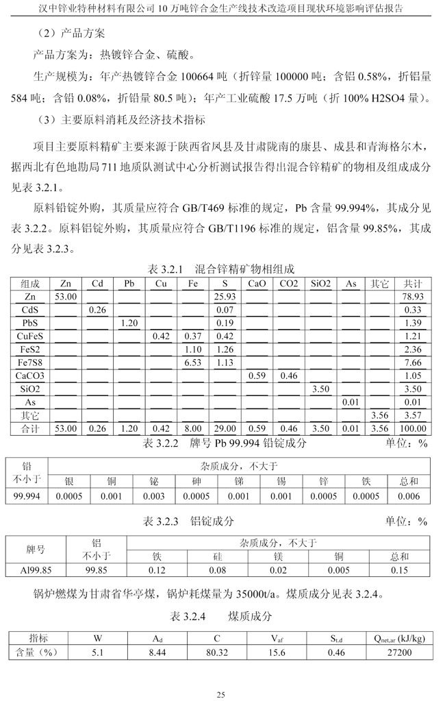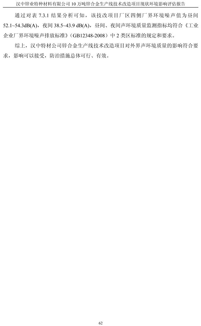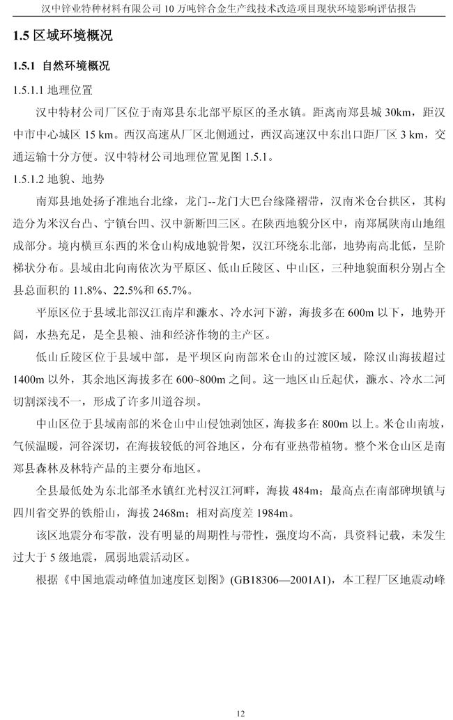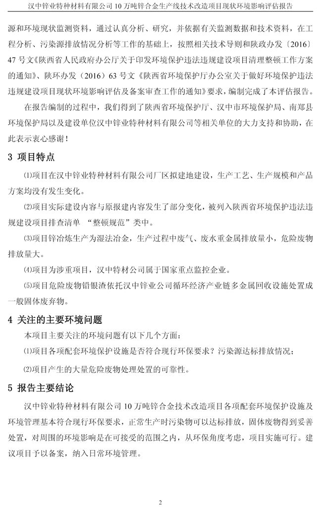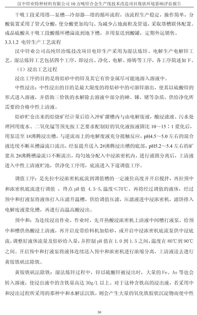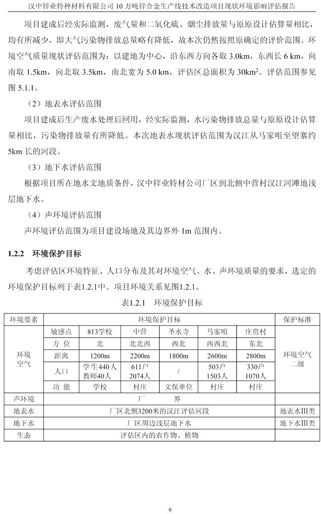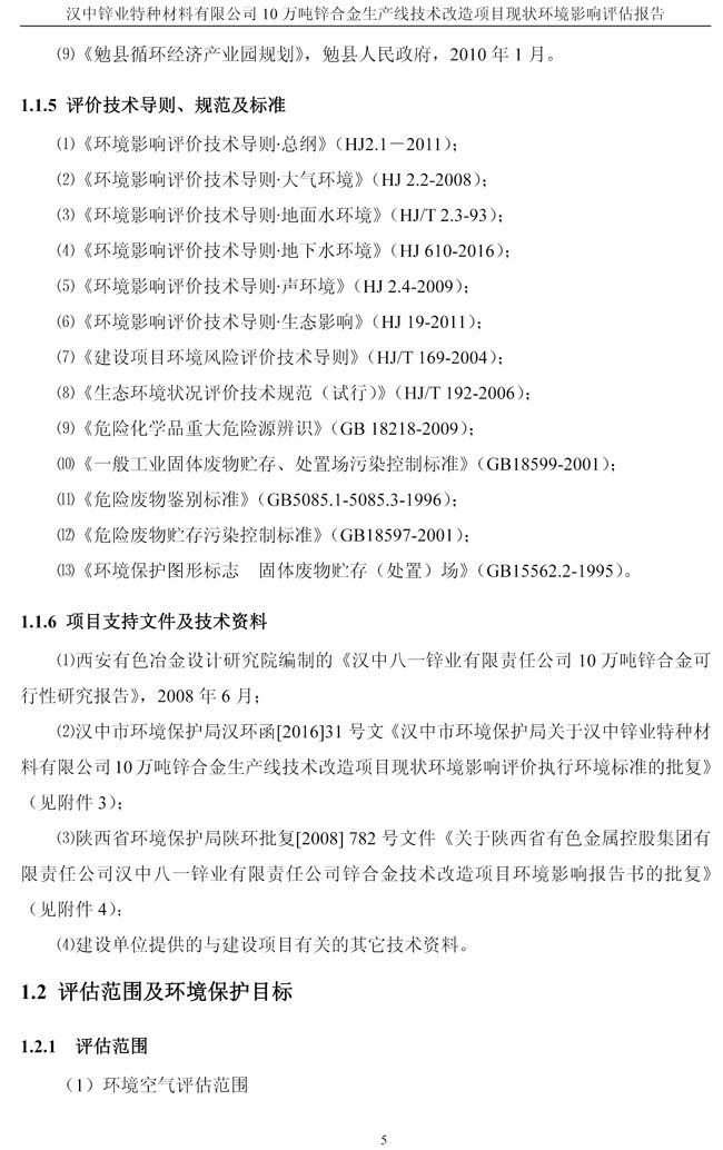 漢中鋅業(yè)公司鋅合金項目現(xiàn)狀環(huán)境影響評估報告