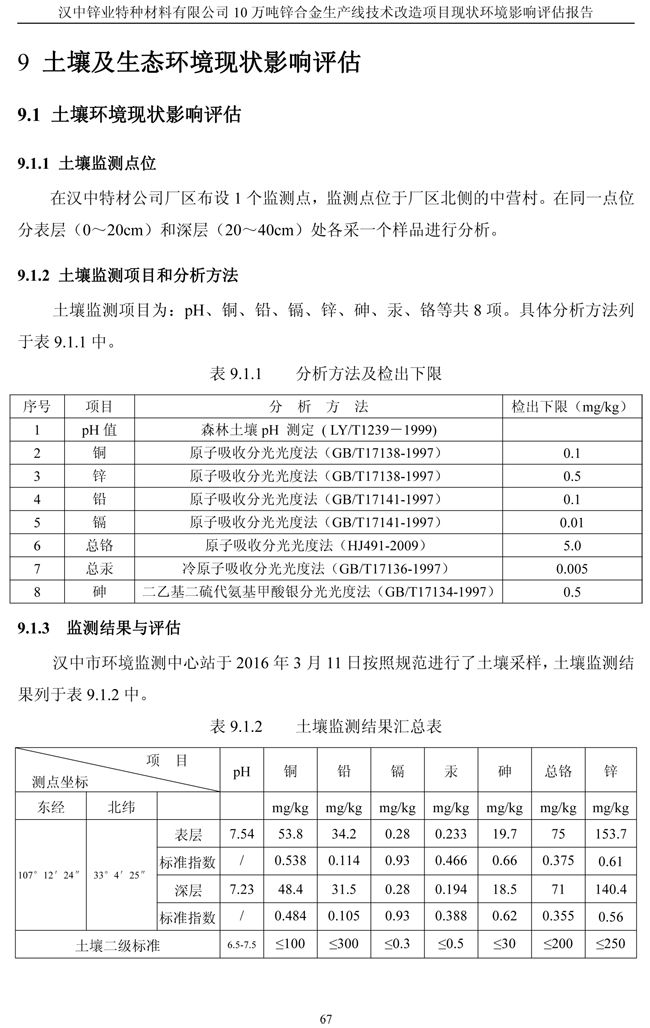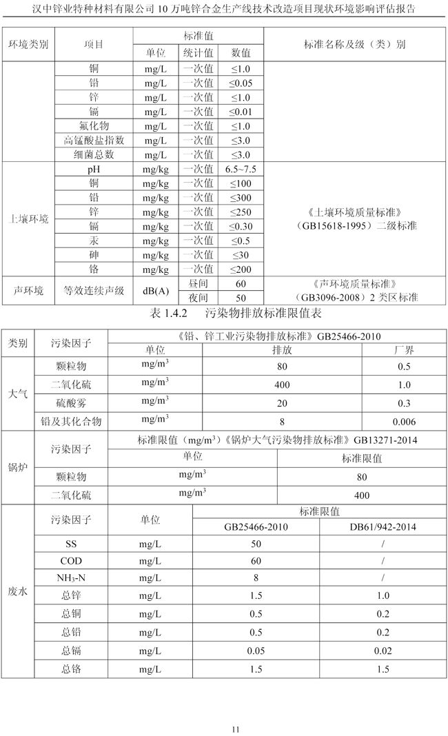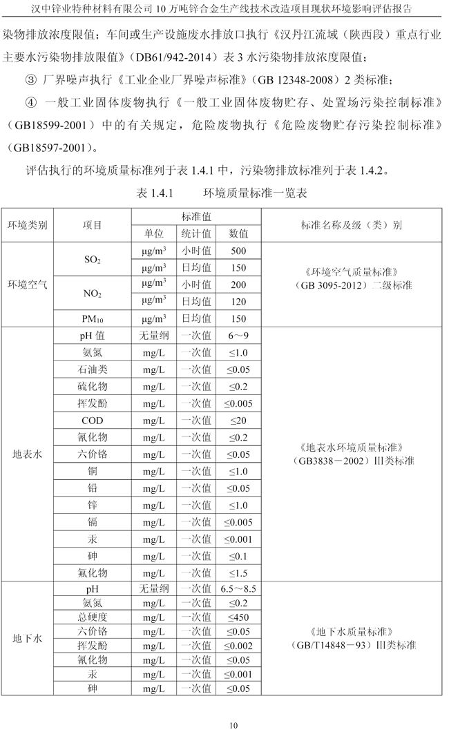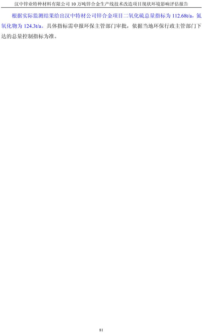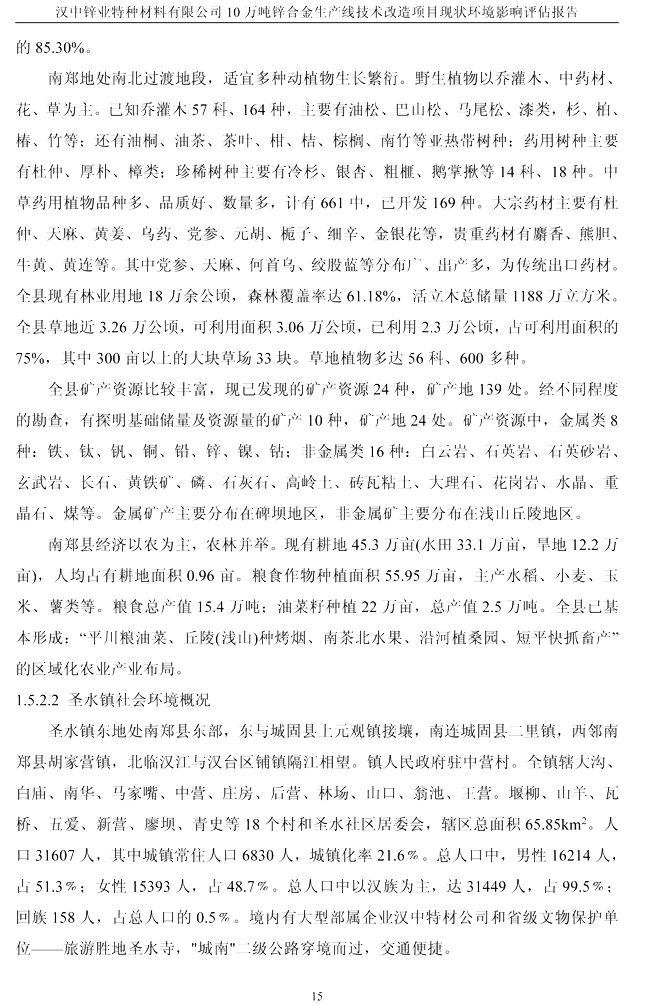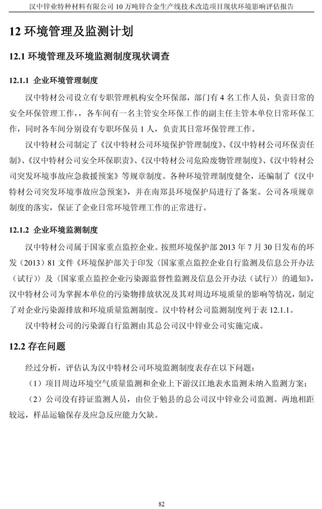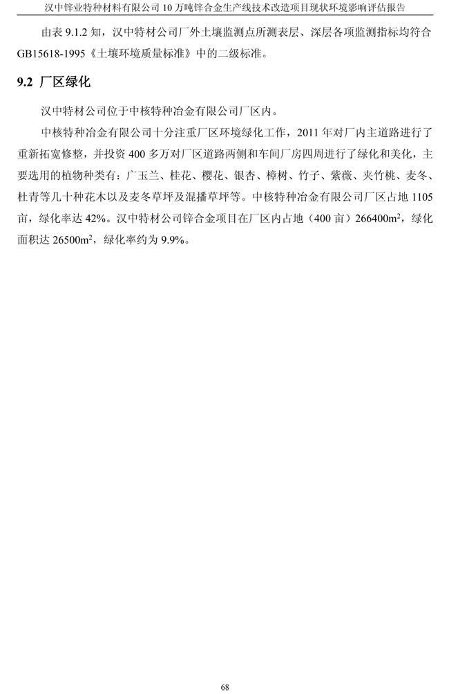 漢中鋅業(yè)公司鋅合金項目現(xiàn)狀環(huán)境影響評估報告