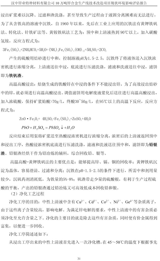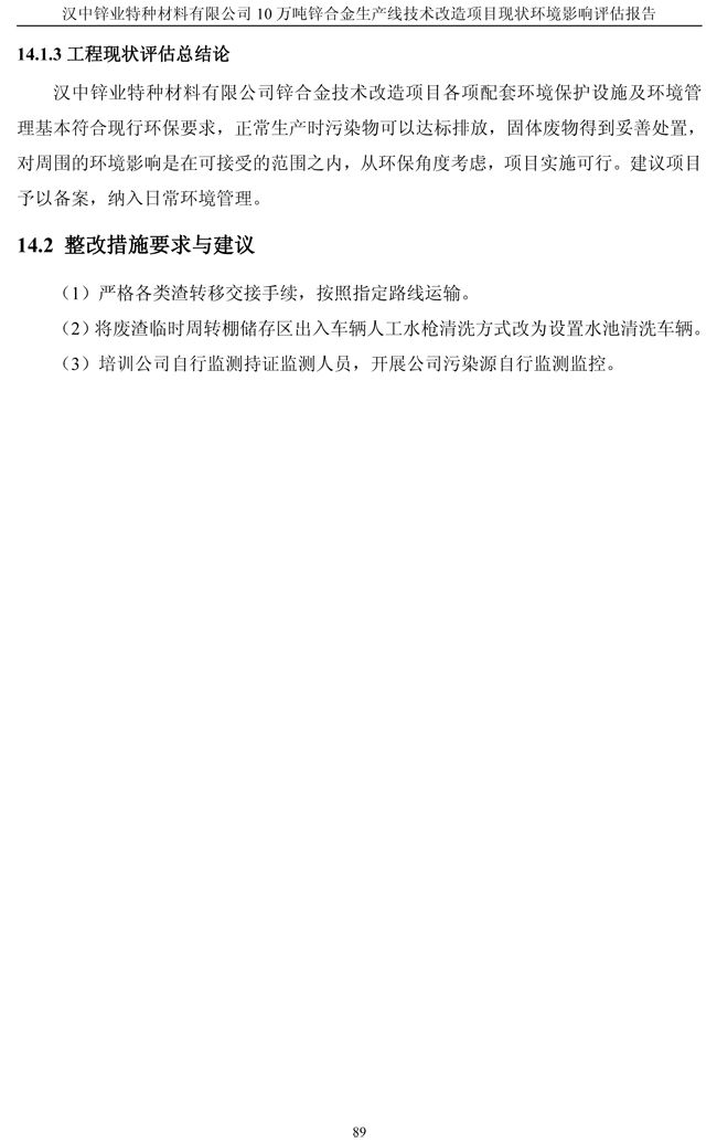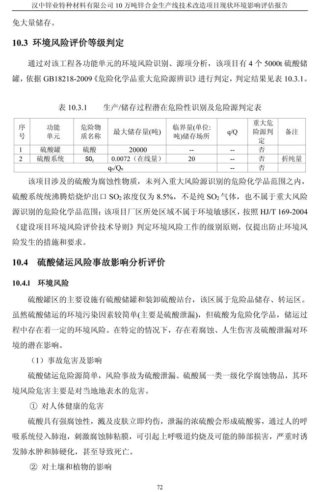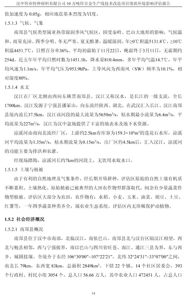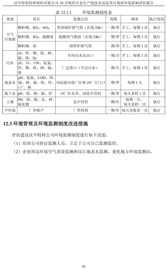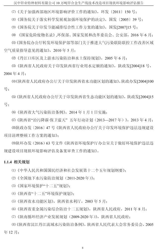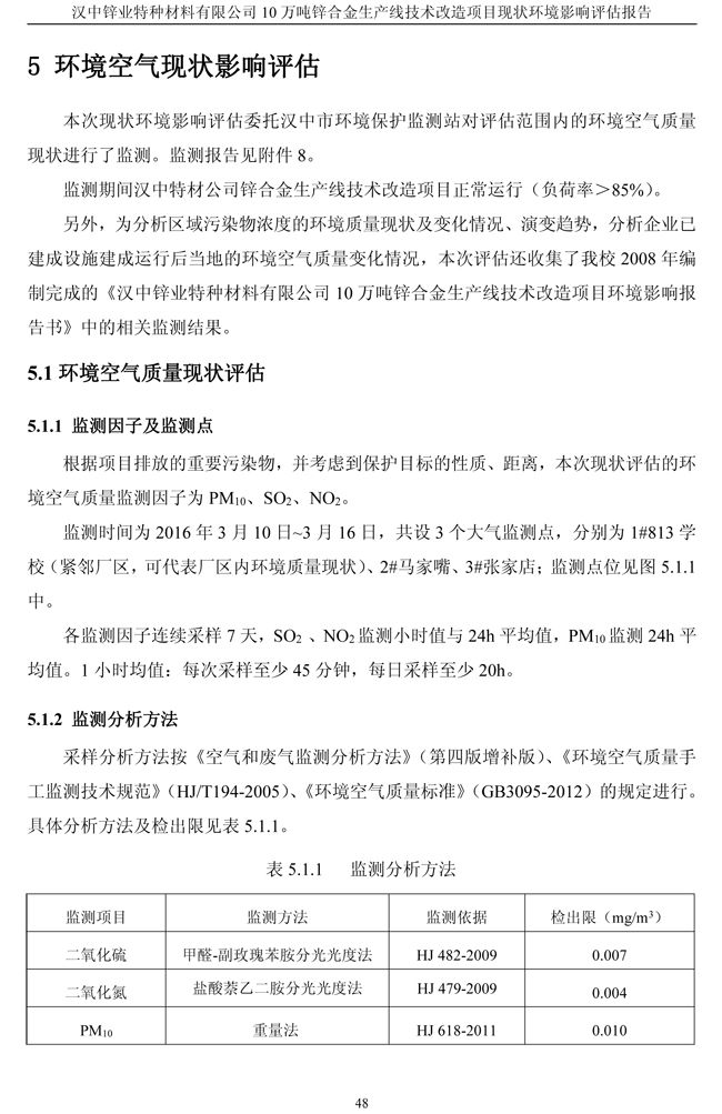 漢中鋅業(yè)公司鋅合金項目現(xiàn)狀環(huán)境影響評估報告