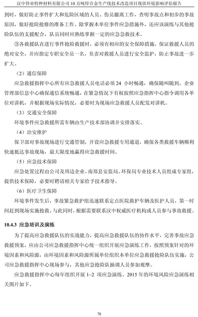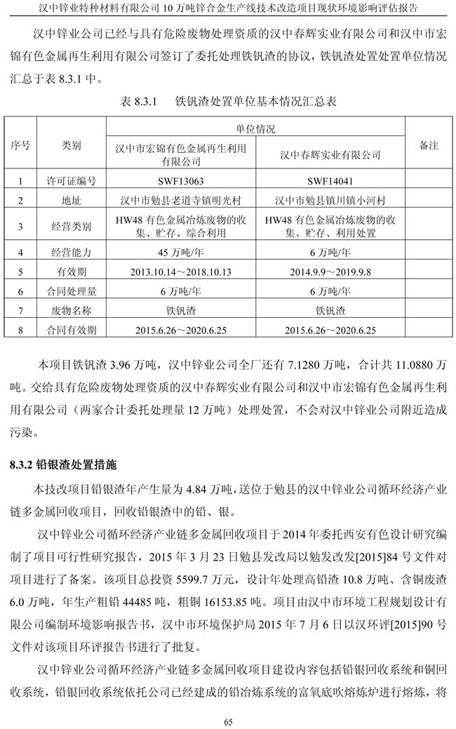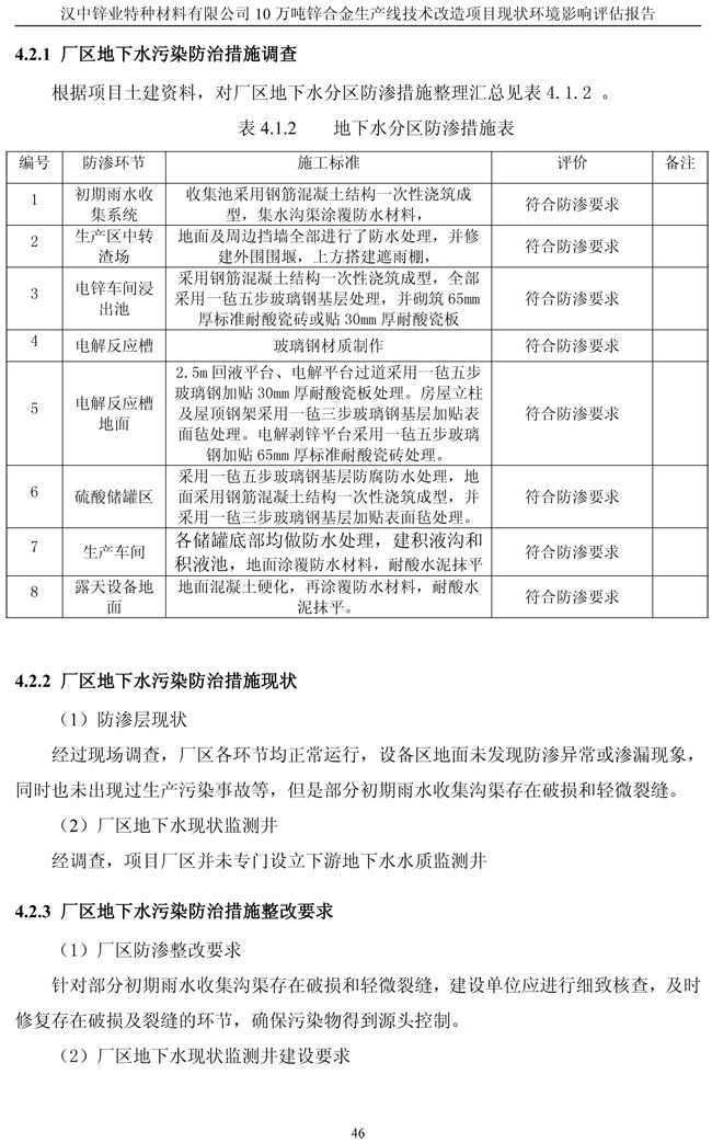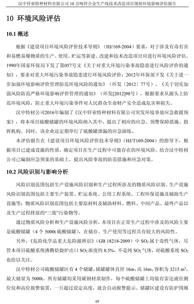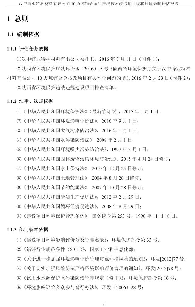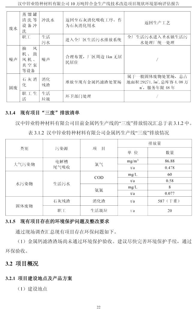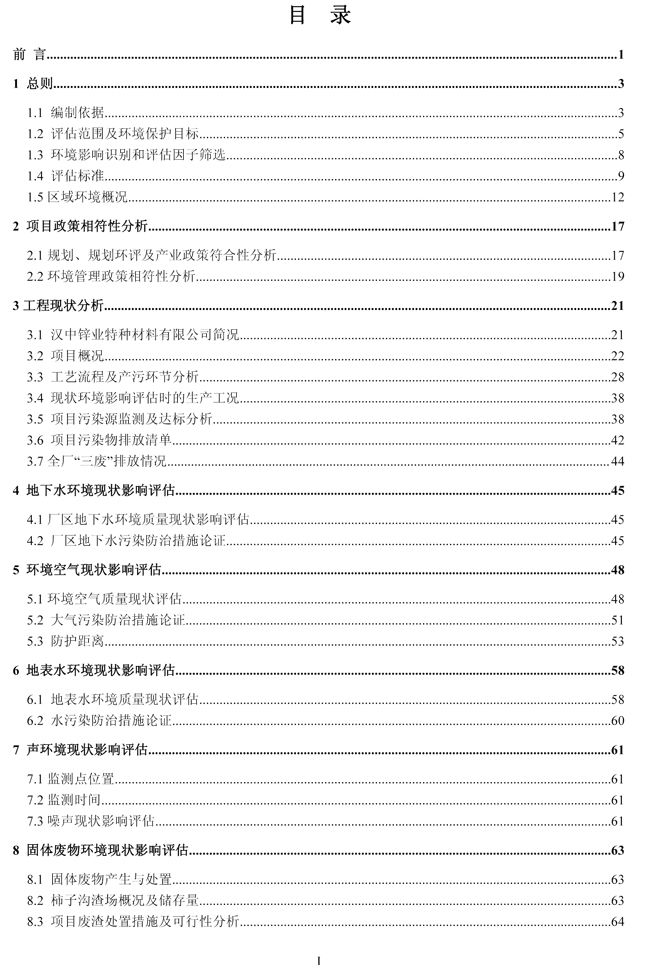 漢中鋅業(yè)公司鋅合金項目現(xiàn)狀環(huán)境影響評估報告