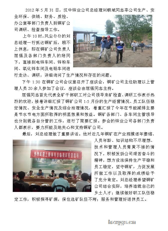 充分肯定 殷切希望——漢中鋅業公司總經理劉朝斌一行來銅礦調研