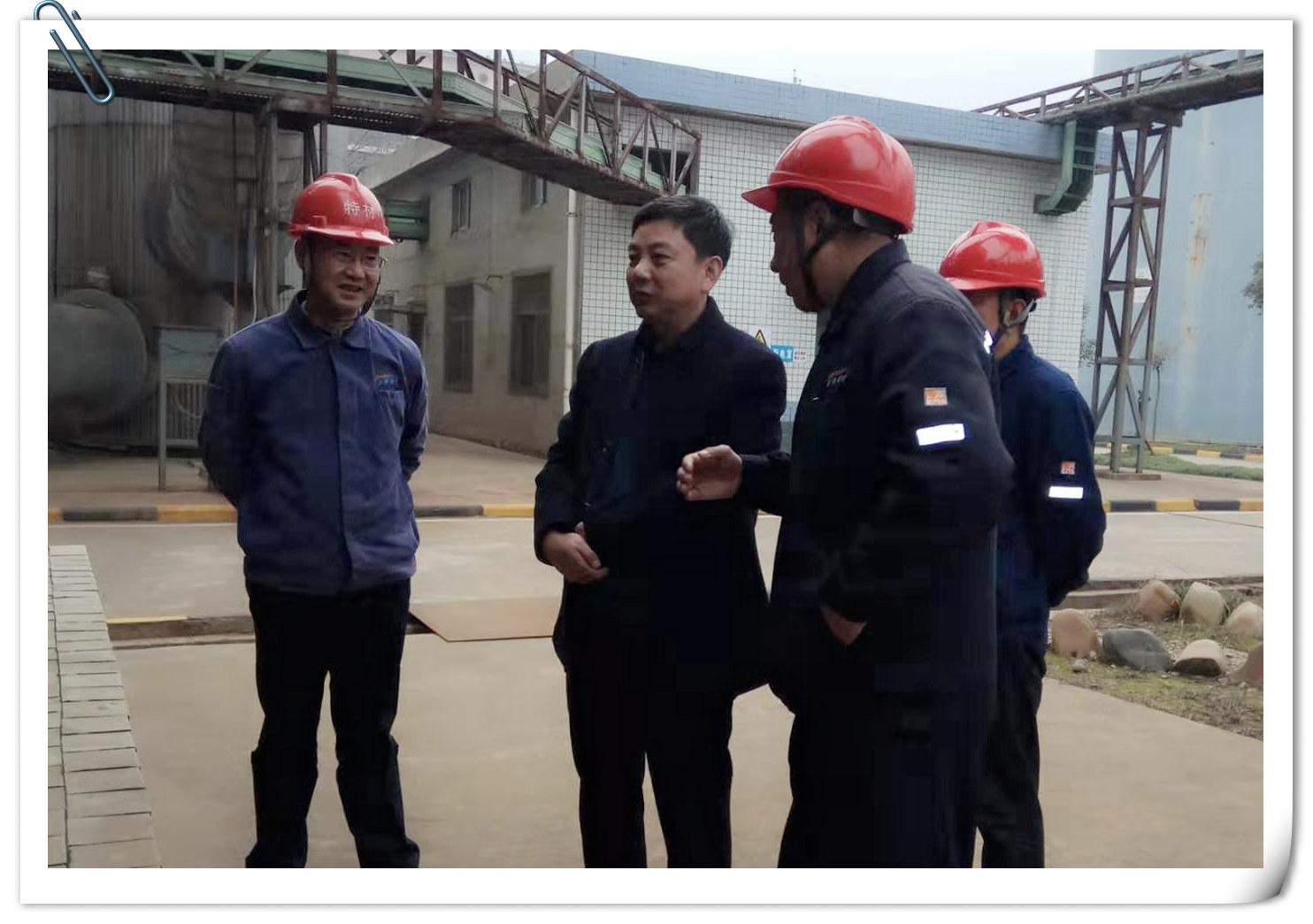 2019年11月21日上午,公司黨委書記、董事長何學斌前往特材公司調研大干四季度工作開展情況和鋅冶煉浸出渣無害化綜合利用技改項目建設情況。公司副總經理、特材公司總經理李永,公司黨委委員、組織部長楊新宏,特材公司副總經理林拉才陪同調研。