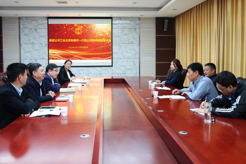426日下午,雨后天晴,春意盎然,集團工會主席張繼祥、副主席劉朝斌、女職委主任徐佳、寶鈦工會副主席田周平就公司工會工作開展情況進行調研指導。